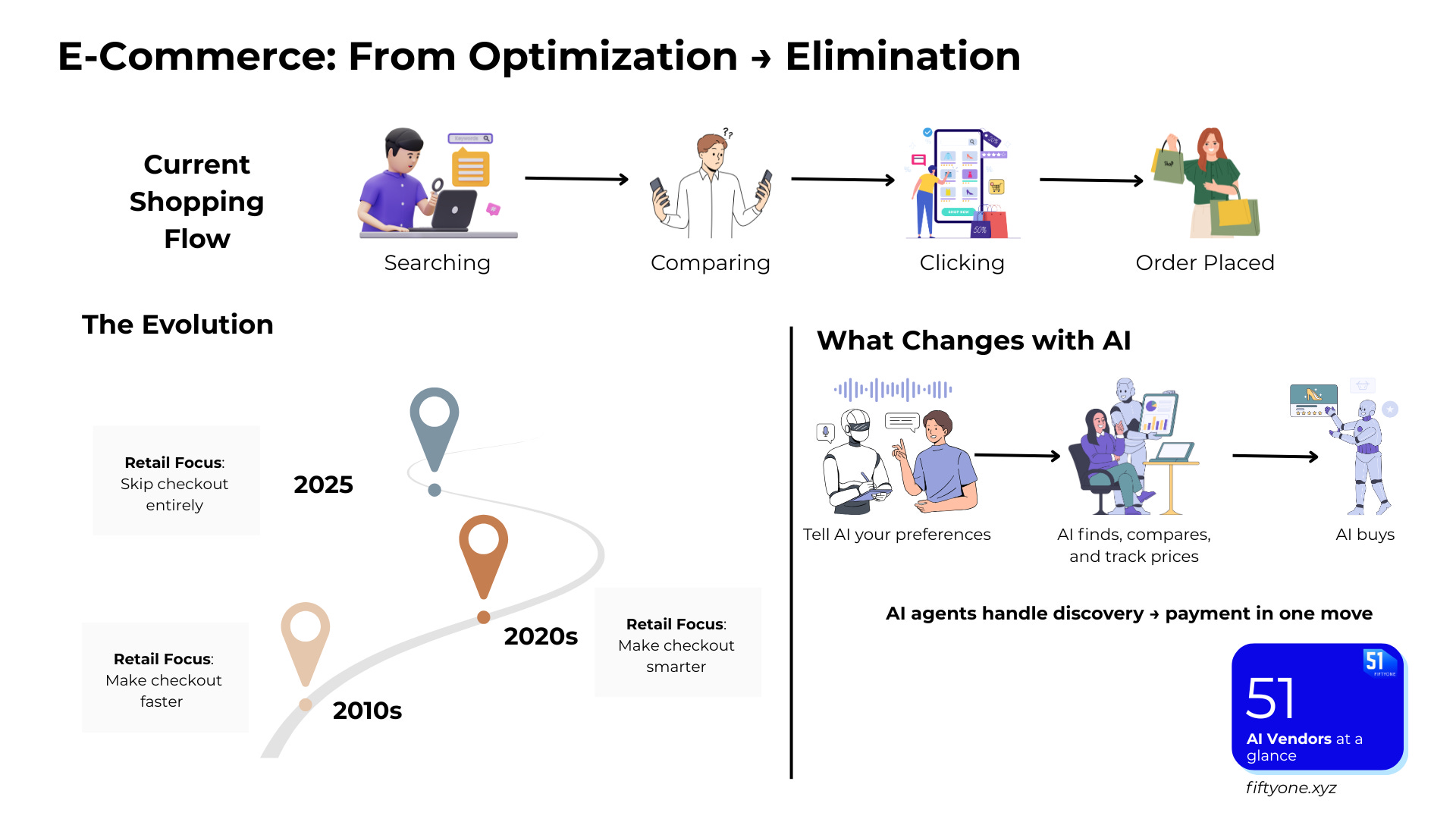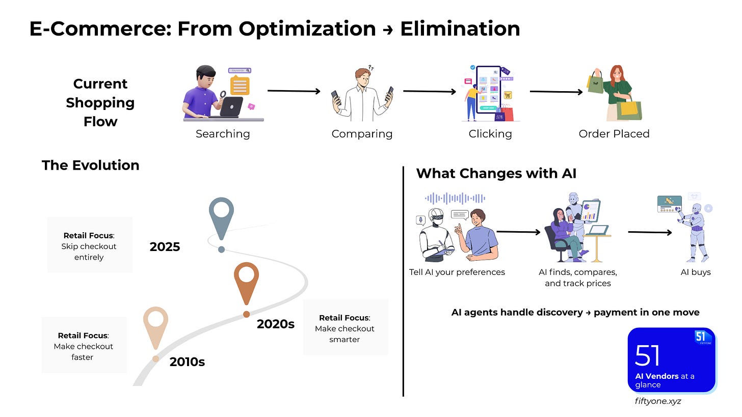 Retail has spent two decades optimizing checkout. 1-click orders. Fast lanes. Mobile wallets. But all of that still assumes the shopper is doing something — searching, comparing, clicking.