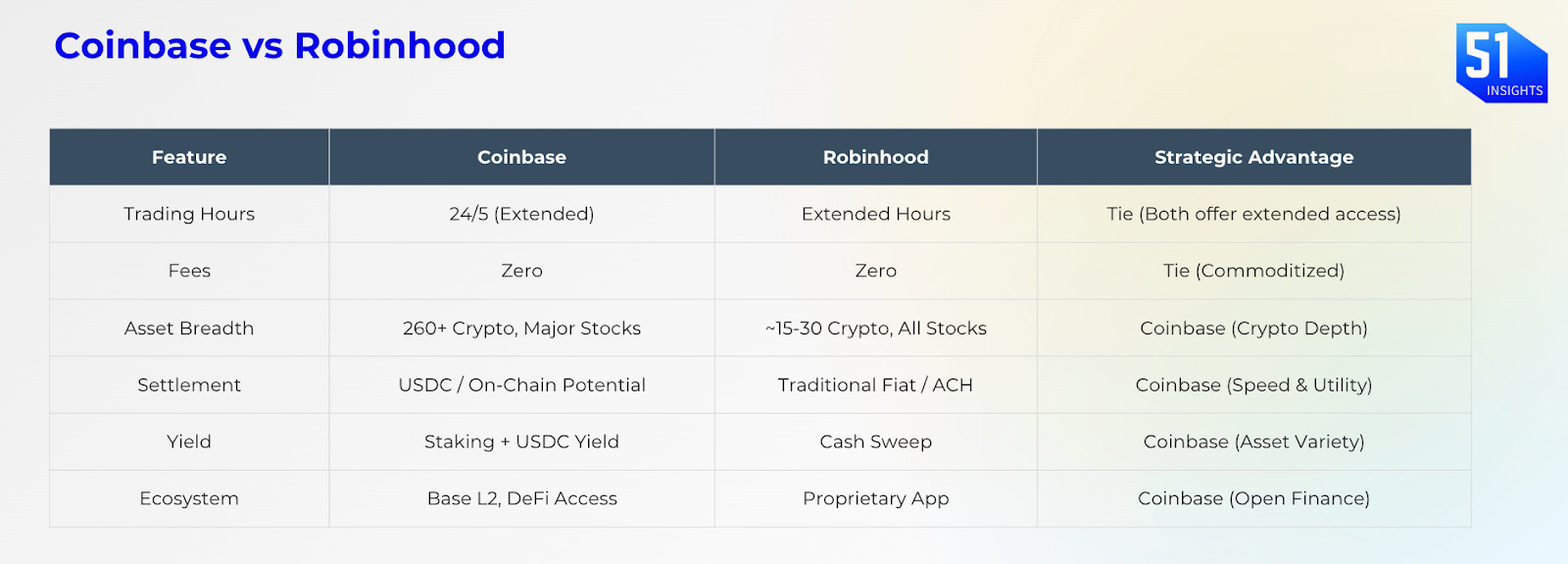 Be smart: Unlike competitors such as Robinhood, which rely on traditional clearinghouses and third-party crypto custodians, Coinbase is building its own vertical stack with Base blockchain. The blockchain serves as the settlement layer, while USDC acts as the medium of exchange.