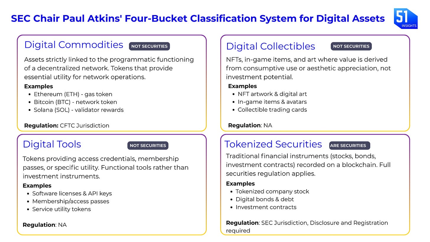 Senate Agriculture Draft (Chair John Boozman, released Nov 2025): Emphasizes CFTC jurisdiction, permits more decentralization, treats tokens as commodities once networks are functional. [Read draft]