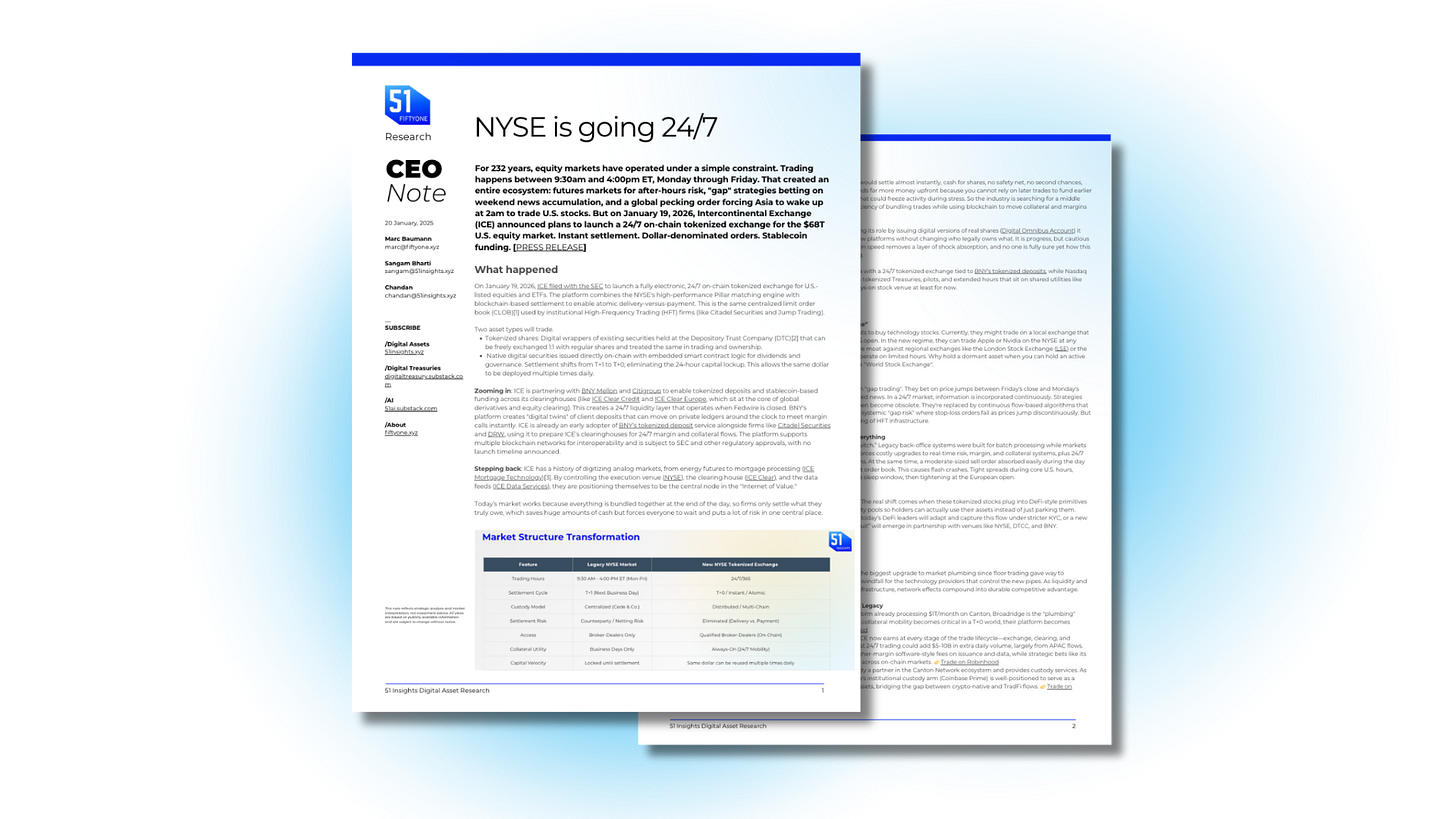 But on January 19, 2026, Intercontinental Exchange (ICE) announced plans to launch a 24/7 on-chain tokenized exchange for the $68T U.S. equity market. Instant settlement. Dollar-denominated orders. Stablecoin funding. [PRESS RELEASE]