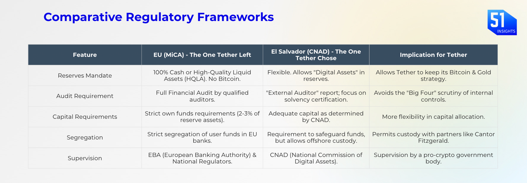 Simultaneously, Tether has finalized its regulatory migration from the Caribbean to El Salvador, effectively sidestepping the EU’s stringent MiCA regulations (which require 100% cash reserves) in favor of a jurisdiction prioritizing sovereign Bitcoin adoption.